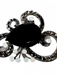 Brooch, Rhodium Plated Metal with Cubic Zircon (B4960) Jet/Opal