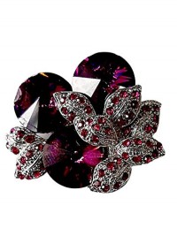 Brooch, Rhodium Plated Metal with Cubic Zircon (B5804) Silver/Amethyst
