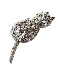 Brooch, Rhodium Plated Metal with Cubic Zircon (B3138) silver
