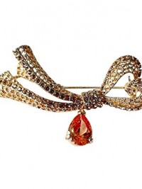 Brooch, Rhodium Plated Metal with Cubic Zircon (B6916) Gold/Topaz