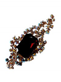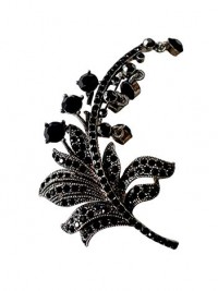Brooch, Rhodium Plated Metal with Cubic Zircon (B4360) Black