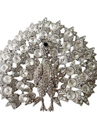 Brooch, Rhodium Plated Metal with Cubic Zircon (B2395) Crystal