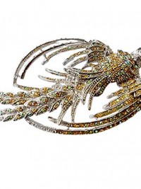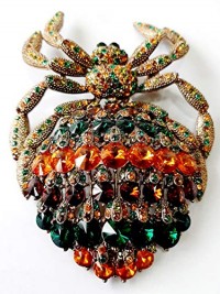 Brooch, Rhodium Plated Metal with Cubic Zircon (B2395) Multi color