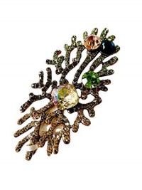 Brooch, Rhodium Plated Metal with Cubic Zircon (B2417) Multi Color