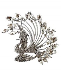 Brooch, Rhodium Plated Metal with Cubic Zircon (B2549) silver