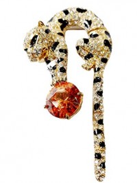 Brooch, Rhodium Plated Metal with Cubic Zircon (B2539) Gold
