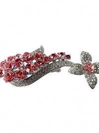 Brooch, Rhodium Plated Metal with Cubic Zircon (B6184) Silver/Lt pink