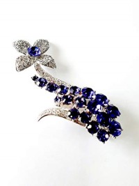 Brooch, Rhodium Plated Metal with Cubic Zircon (B6184) Silver/Purple