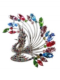 Brooch, Rhodium Plated Metal with Cubic Zircon (B2549) Multi Color