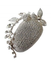 Brooch, Rhodium Plated Metal with Cubic Zircon (B6874) silver