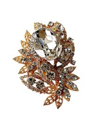 Brooch, Rhodium Plated Metal with Cubic Zircon (B7048) Gold/Crystal