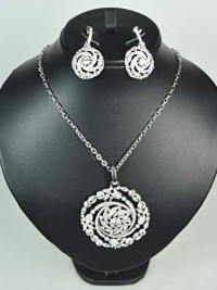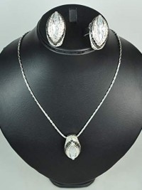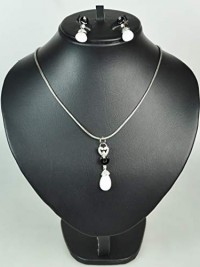 NECKLACE SET WITH EARRING CUBIC ZIRCON .Rhodium Plated Metal with Swarovski Stone.(ST11369)- Silver/black white stone.