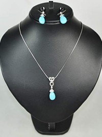 NECKLACE SET WITH EARRING. RHODIUM PLATED METAL WITH CUBIC ZIRCON STONE (ST49409) SILVER/TURQUOISE