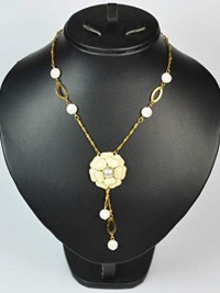 FASHION NECKLACE None Precious Metal (N2864) – Gold Chain/Beige Flower Pendant