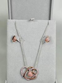 Rhodium-plated with Pink Cubic Zirconia Stone Necklace Set (Double Chain Necklace with Intertwining Hearts Design…