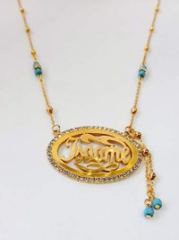 Lebanon Design necklace/Gold Plated Metal with Arabic Name (ALLAH) Gold (N2605)