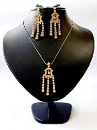 Belgian Design Necklace Set, Rhodium Plated Metal with Cubic Zircon (ST49065) Gold/Multi color