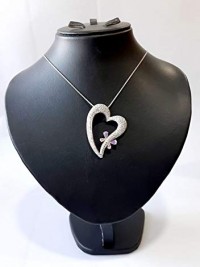 Necklace Belgian Design, Rhodium Plated Metal with Cubic Zircon (N49465) Silver/Light Pink/Light Purple
