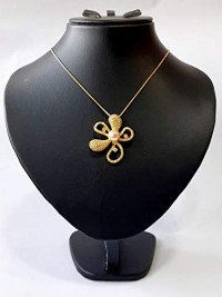 Necklace, Rhodium Plated Metal with Cubic Zircon (N56878) Gold