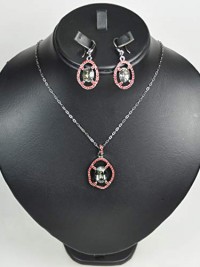 CHARTAGE NECKLACE SET BELGIAN DESIGN. RHODIUM PLATED METAL WITH CUBIC ZIRCON STONE (ST64431) BLACK/RED