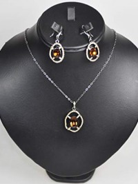 CHARTAGE NECKLACE SET BELGIAN DESIGN. RHODIUM PLATED METAL WITH CUBIC ZIRCON STONE (ST64431) BLACK/TOPAZ