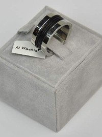 Finger Ring Rhodium Plated Metal (F3482) Silver with Black