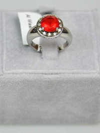 Finger Ring Rhodium Plated Metal With Cubic Zircon (F3300) Silver/Light Siam