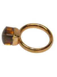 Finger Ring Rhodium Plated with Cubic zircon Stone (F4192) Smoked Topaz/Gold Color