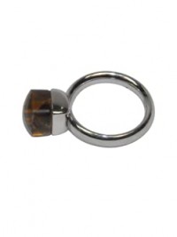 Finger Ring Rhodium Plated with Cubic zircon Stone (F4192) Smoked Topaz