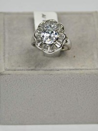 Finger Ring Rhodium Plated Metal with Cubic Zircon (F3236) Silver