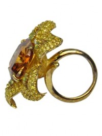 Finger Ring Rhodium Plated with Cubic zircon Stone, Light Olivine/Light Topaz (F51809)