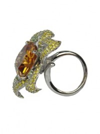 Finger Ring (F51809) Rhodium Plated with Cubic zircon Stone, Silver/Light Topaz