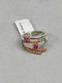 Finger Ring Rhodium Plated Metal with Cubic Zircon (FSP39) Silver/Fuchsia