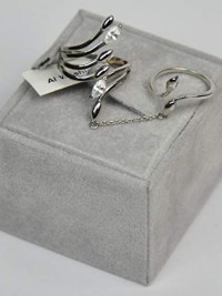 Finger Ring Rhodium Plated Metal with Cubic Zircon (FSP39) Silver