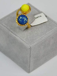 Finger Ring Rhodium Plated Metal with Cubic Zircon (FSP39) Gold/Cobalt, Jonquil Stone