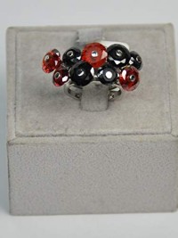 Finger Ring Rhodium Plated Metal with Cubic Zircon (FSP39) Silver/Jet, Light Siam