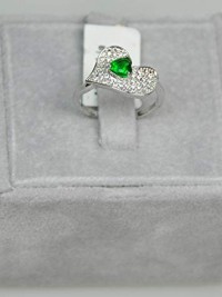 Finger Ring Rhodium Plated Metal with Cubic Zircon (FSP39) Silver/light Green