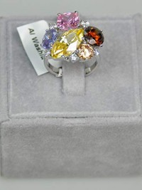 Finger Ring Belgian Design Rhodium Plated Metal With Cubic Zircon (F71862) Silver/Multi Color