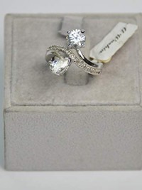 Finger Ring Belgian Design Rhodium Plated Metal with Cubic Zircon (F72207) Silver