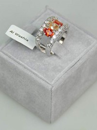Finger Ring Rhodium Plated Metal with Cubic Zircon (F92150) Silver/light Topaz, Dorado Stone