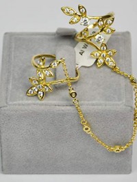 Finger Ring Rhodium Plated Metal with Cubic Zircon (F9575) Gold