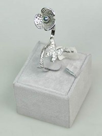 Finger Ring Lebanon Design. Rhodium Plated Metal With Cubic Zircon and pearl (F3954) Silver