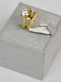Finger Ring Rhodium Plated Metal With Cubic Zircon (F4195) Gold