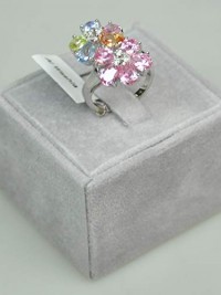 Finger Ring Rhodium Plated Metal With Cubic Zircon (F3795) Silver/Multi Color
