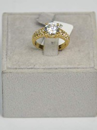 Finger Ring Rhodium Plated Metal With Cubic Zircon (F3818) Gold
