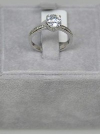 Finger Ring Rhodium Plated Metal With Cubic Zircon (F3818) Silver