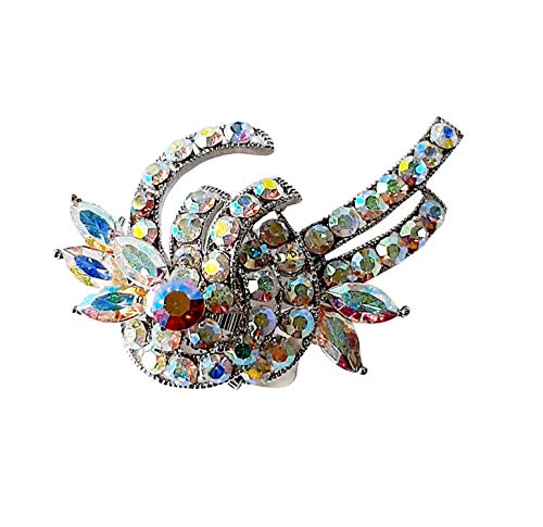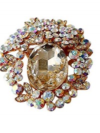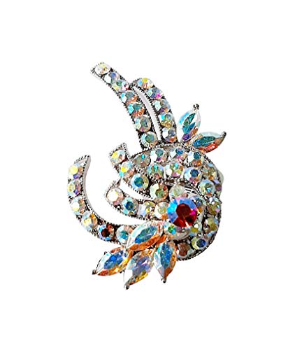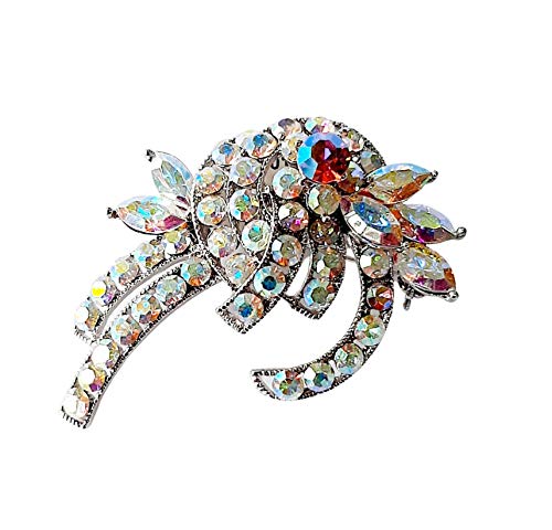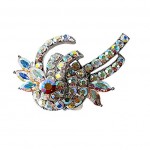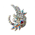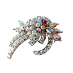 Brooch, Rhodium Plated Metal with Cubic Zircon (B2316) Multi Color