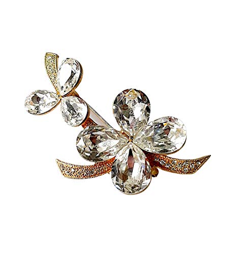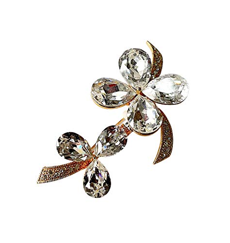 Brooch, Rhodium Plated Metal with Cubic Zircon (B2516) Gold
