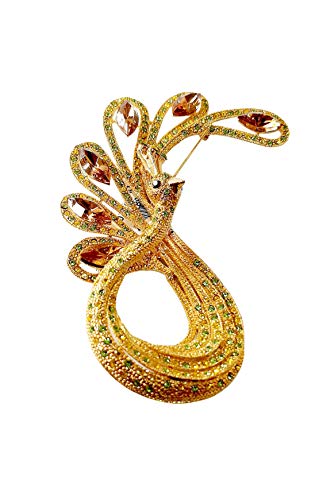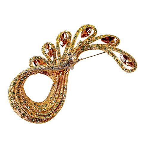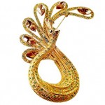 Brooch, Rhodium Plated Metal with Cubic Zircon (B6872) Gold