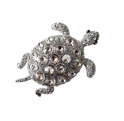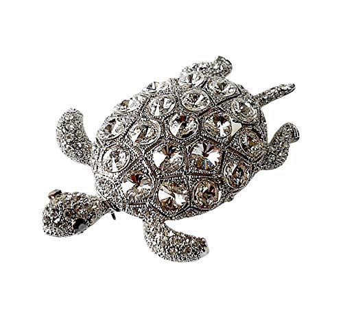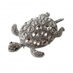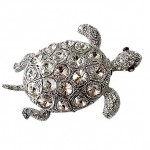 Brooch, Rhodium Plated Metal with Cubic Zircon (B7131) Silver